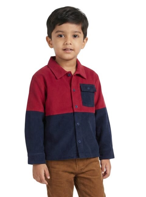 Boys Organic Cotton Corduroy Full Sleeve Colorblock Jacket – Red & Indigo