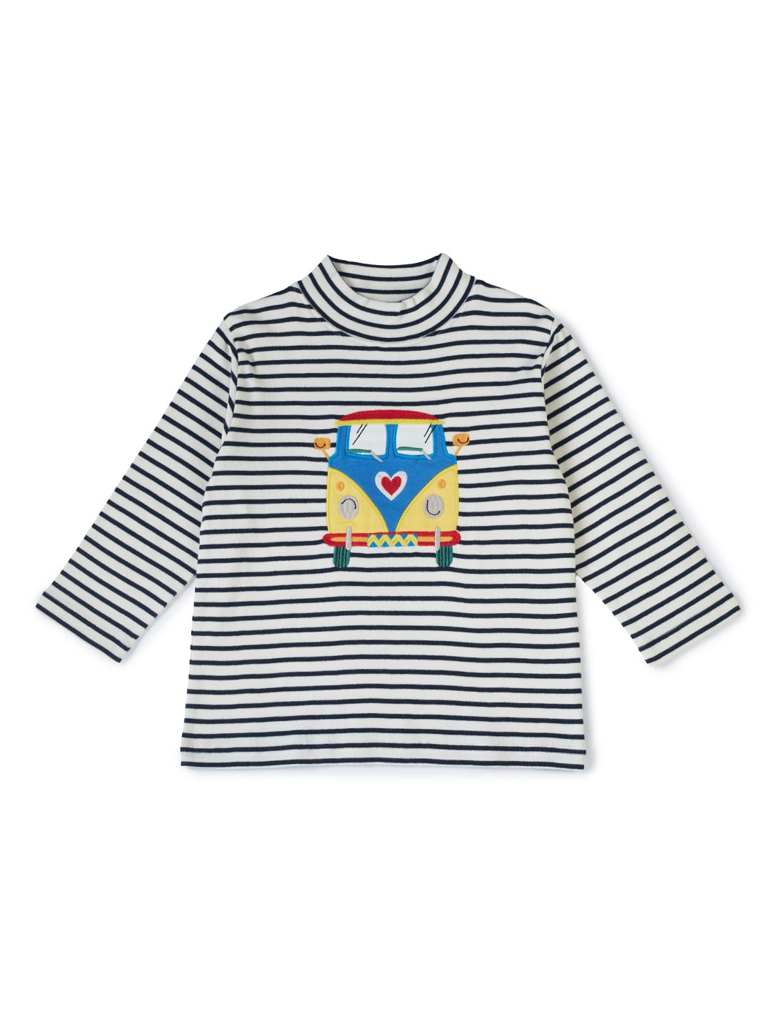 Boys Organic Cotton Knits Full Sleeve Bright And Colourful Van Applique Striped T-Shirt – Navy & White