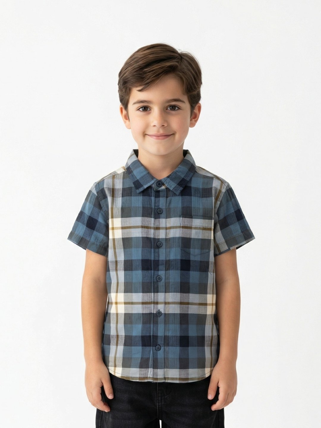 Boys Organic Cotton Chambray Blue Chambrey Shirt