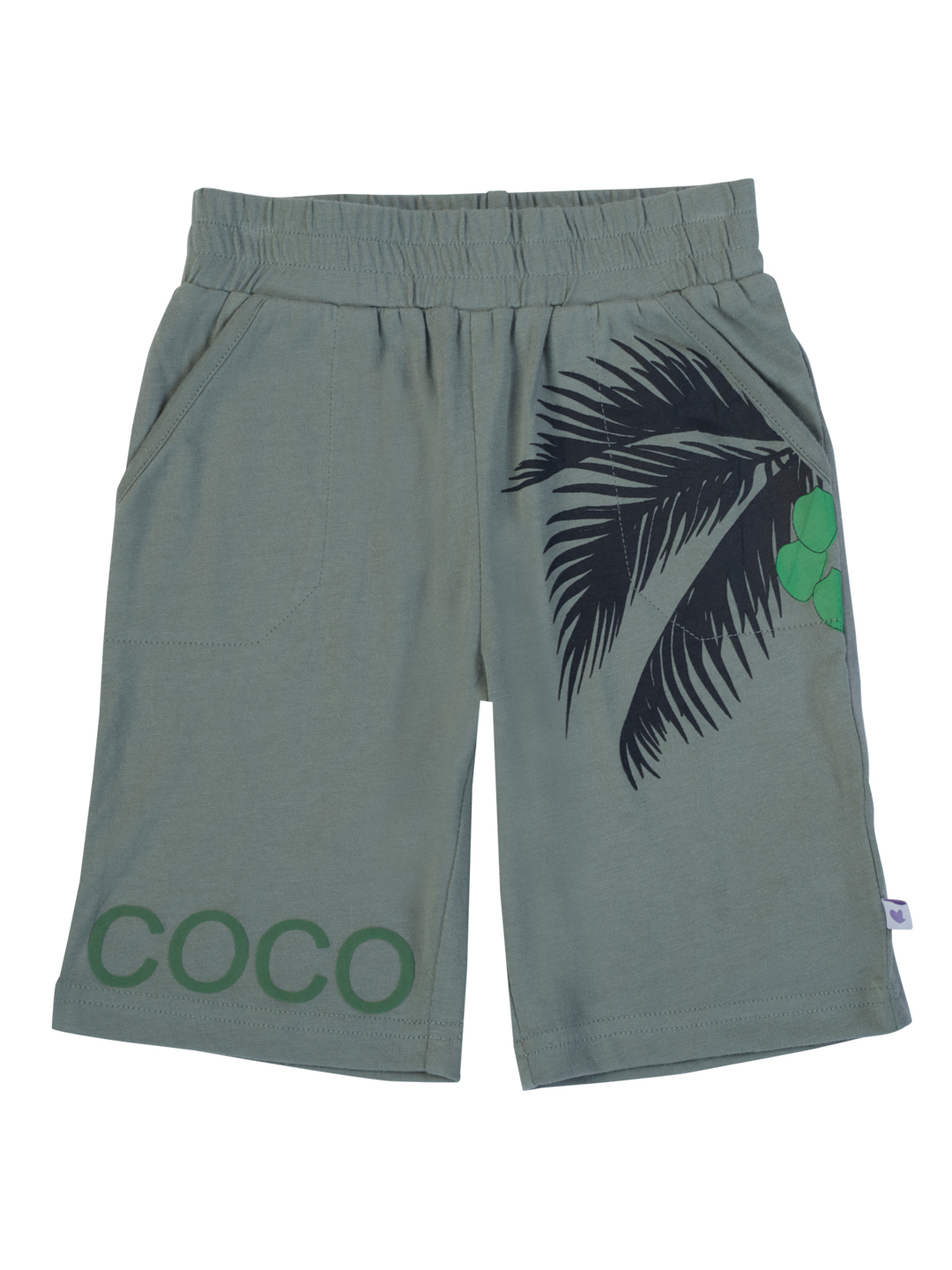 Let your child enjoy carefree summer days in these boys? 3/4th shorts made from 100% pure organic cotton. Thoughtfully designed with a soft, elastic waistband and roomy fit, these shorts deliver maximum comfort and freedom of movement for energetic kids on the go. The tropical print with coconut and palm motifs brings a playful holiday vibe while keeping his look cool and stylish. Practical side pockets make it easy to store little essentials, and the breathable fabric helps keep him fresh even on hot, active days.