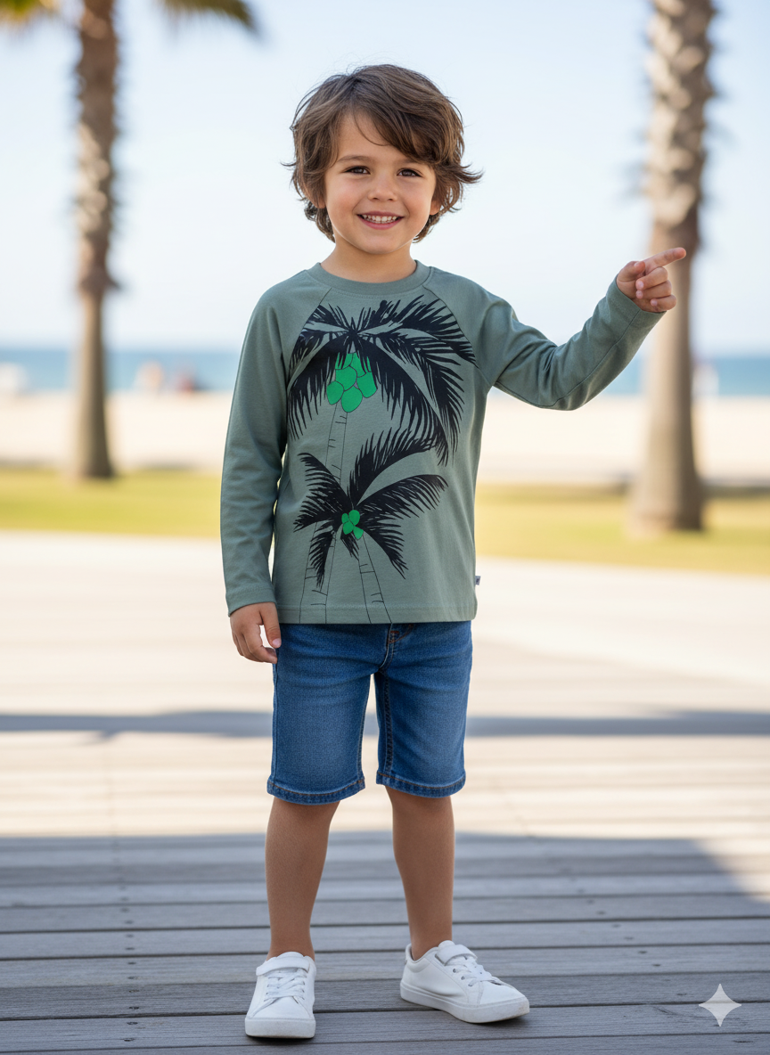 Give your child the ultimate in comfort and style with our Boys’ 100% Organic Cotton Raglan Tee. Crafted from premium certified organic cotton, this long sleeve tee feels exceptionally soft and gentle on delicate skin. The eye-catching palm tree print adds a playful, summery vibe that?s sure to stand out at school, playdates, or family outings.