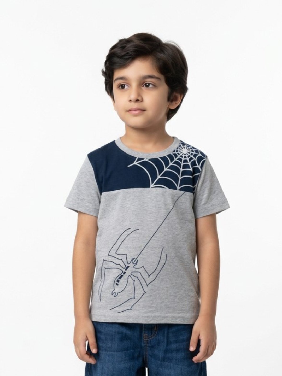 Boys Organic Cotton Single Jersey Short Sleeve Spider Print T-Shirt – Blue