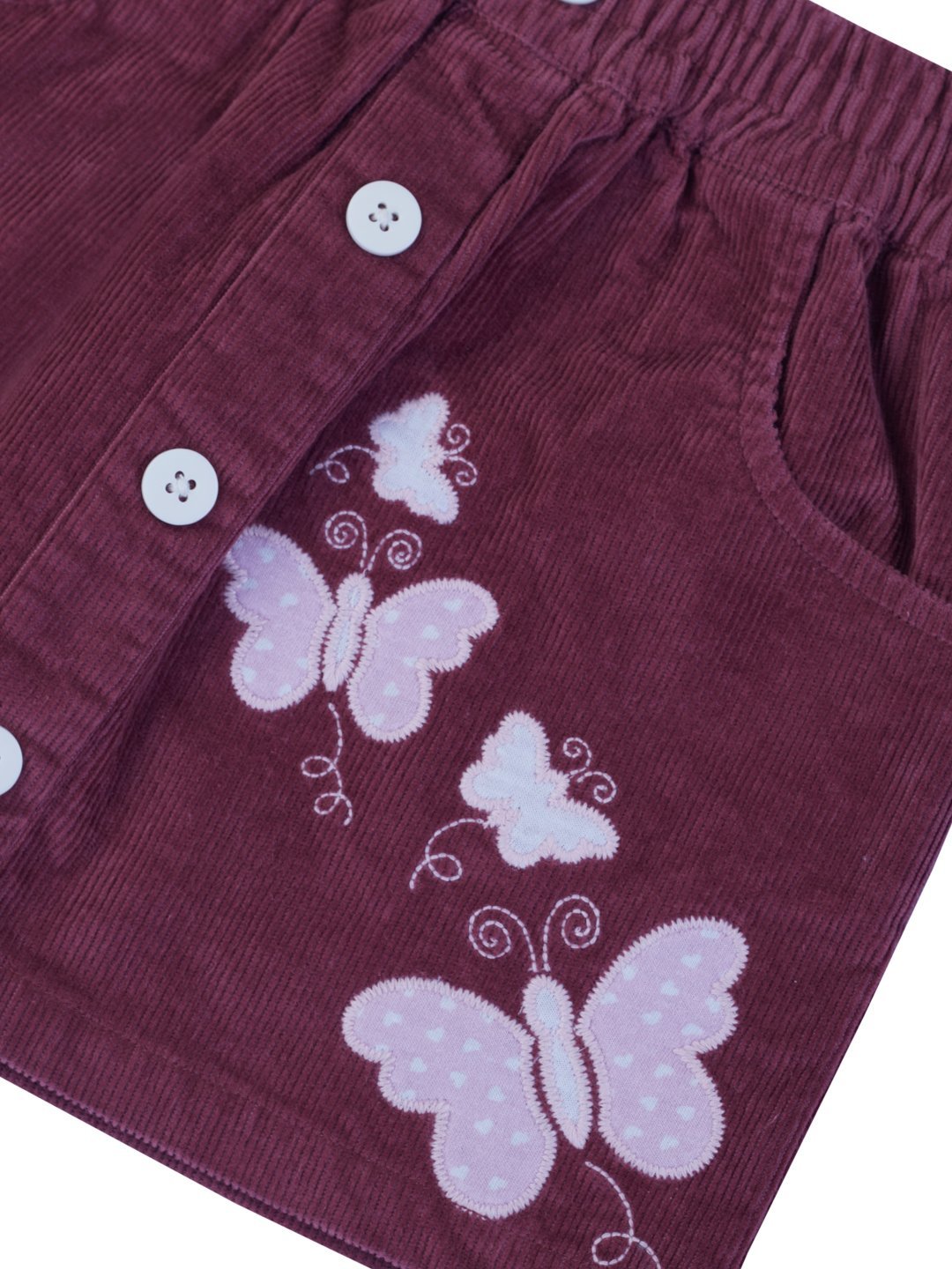 Give your little girl a stylish upgrade with this adorable corduroy skirt. Designed with a soft texture and a classic front-button style, this skirt offers both comfort and charm. The butterfly embroidery adds a playful vibe, while the elastic waistband ensures an easy fit for active kids.