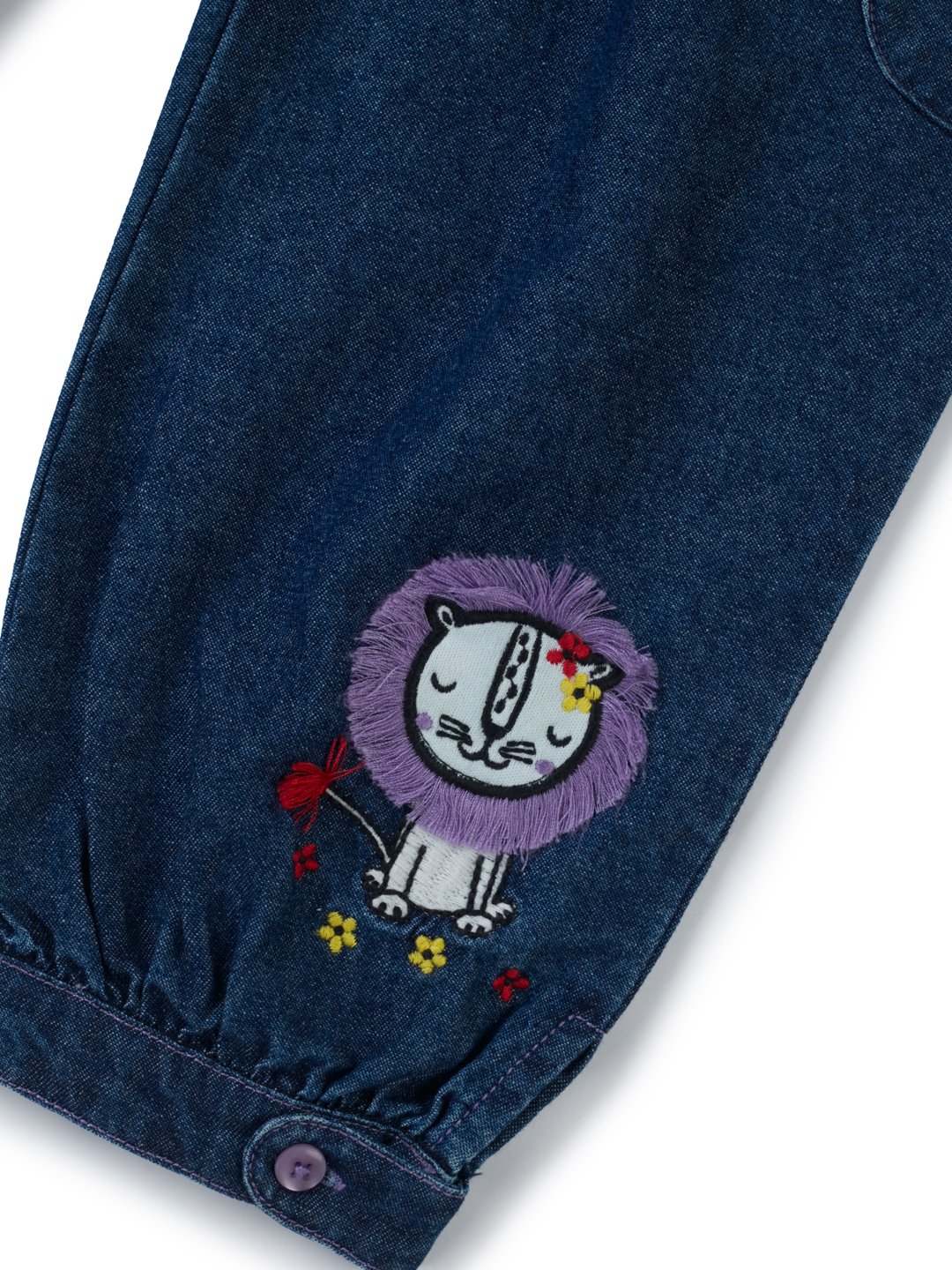 Girls Organic Cotton Denim Cute Tiger Applique Pant – Dark Blue
