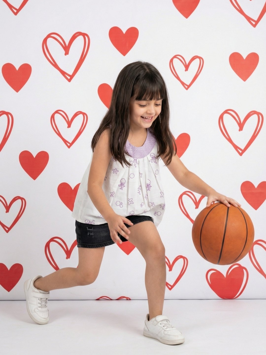 Pranava Girls Organic Cotton Single Jersey Full Sleeves Heart All Over Print Top – Orange