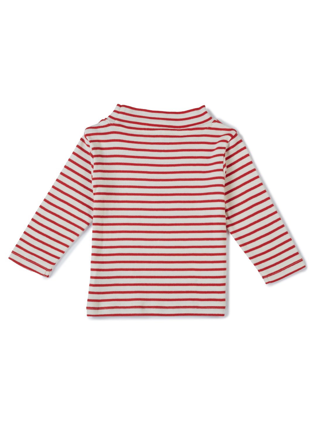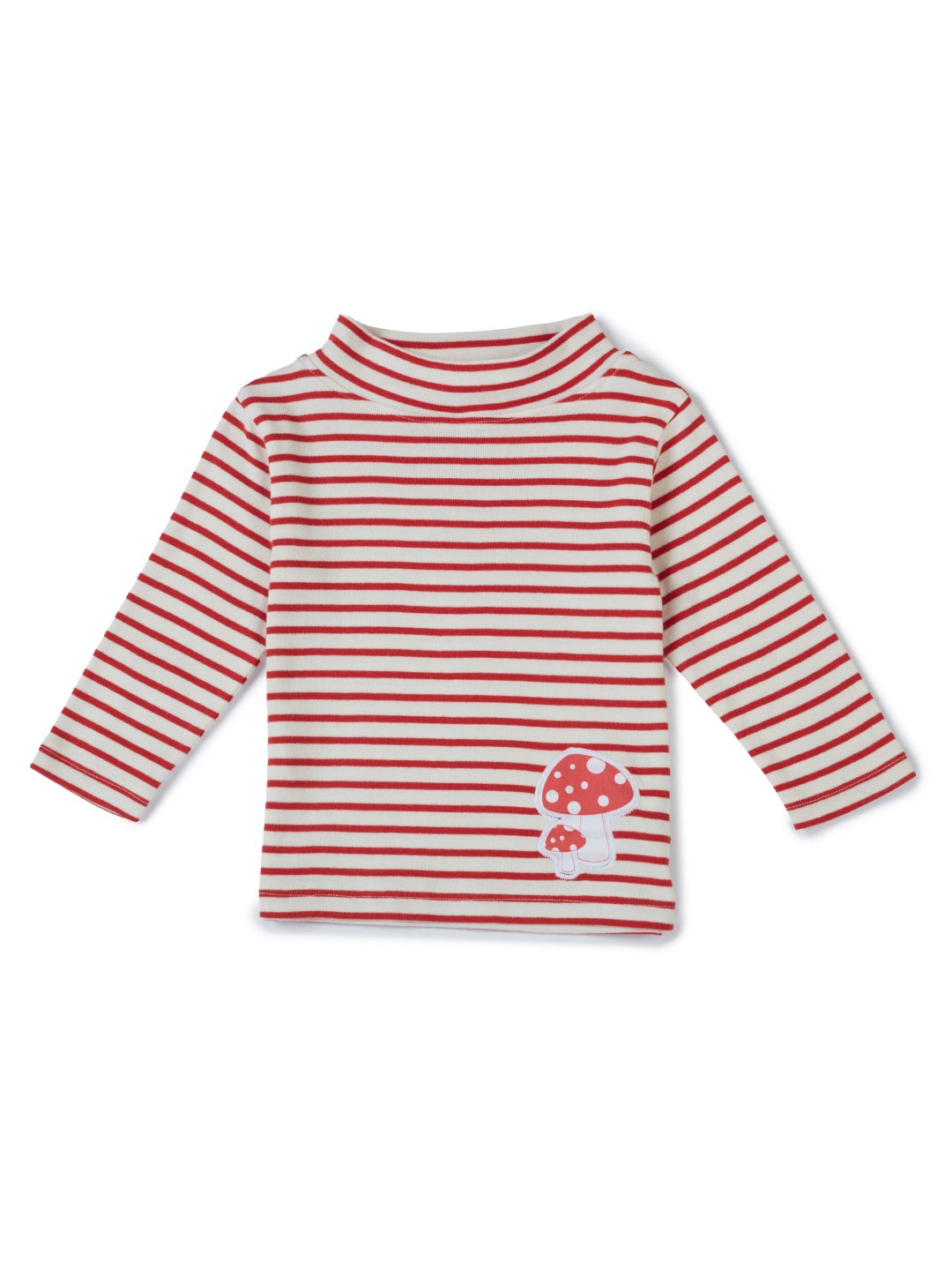 Girls Organic Cotton Knits Full Sleeve Mashroom Digital Patch Stripe Top – Red & White