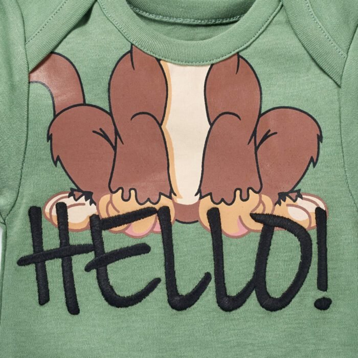 Boys Printed 100% Organic Cotton Bodysuit with Monkey Print- Green