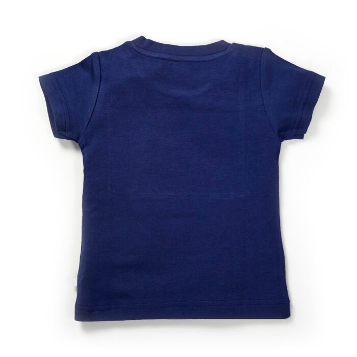 Boys Graphic Printed 100%Organic Cotton T-shirt and Pant Set with Elephant printed patch-Navy