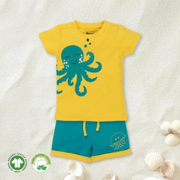 1 review for Baby Boys Printed 100%Organic Cotton Tee with Shorts Set – Yellow and Blue