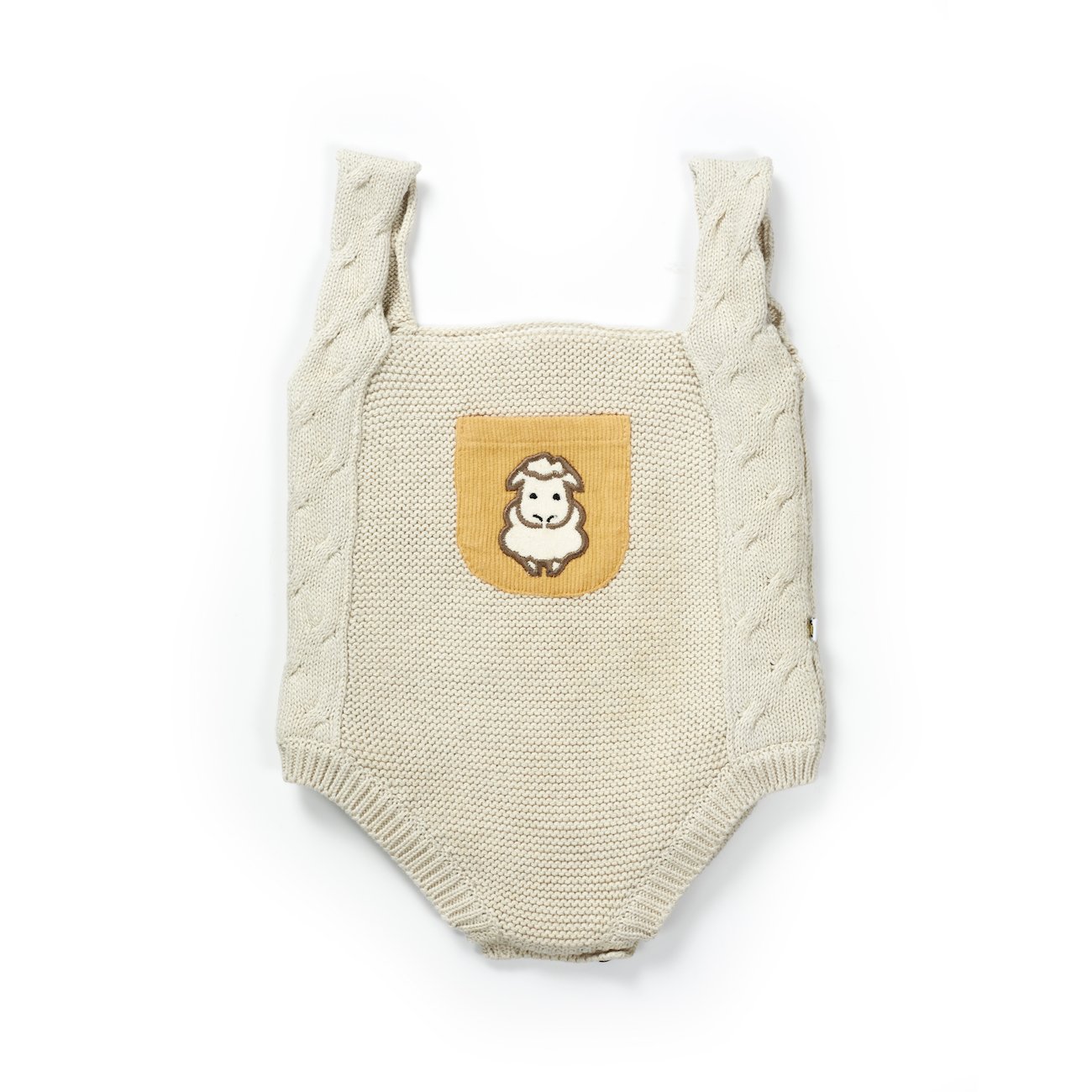 Unisex Printed 100%Organic Cotton baby sweater bodysuits with embroidered pocket- Offwhite