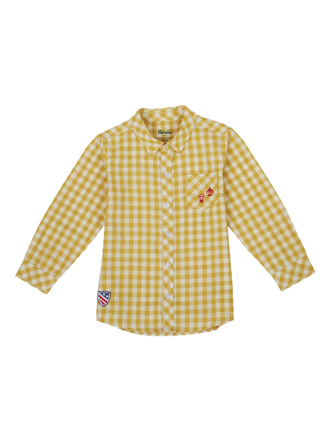 Pranava Boys Organic Cotton Poplin Full Sleeves Embroidery On The Pocket Checkered Shirt – Yellow