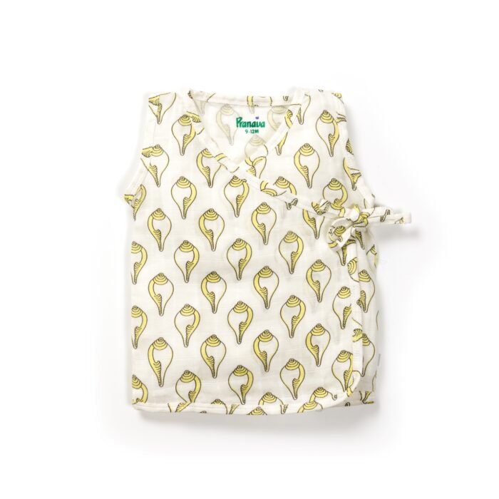 Introduce your little one to our Shankh Printed 100% Organic Cotton Jhabla and Shorts Set in White and Yellow. This adorable set is designed with both style and comfort in mind, perfect for your child’s sensitive skin. Made from the finest organic cotton, it ensures breathability and softness, keeping your baby cozy all day long. The Shankh print adds a touch of charm, making it an ideal choice for both playtime and outings. Choose the best brand in kids wear and newborn baby clothes – buy online today and give your child the gift of pure, natural comfort.