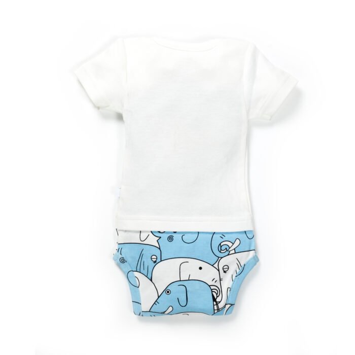 Boys Graphic Printed 100%Organic Cotton Half Sleeves Bodysuit with Elephant print-White