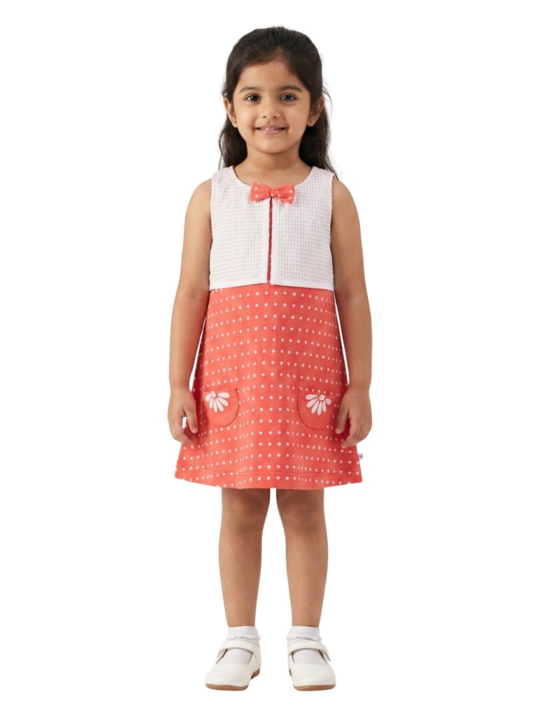 Girls Organic Cotton Woven Sleeveless Tiny Polka Dots All Over Printed Frock – Pink